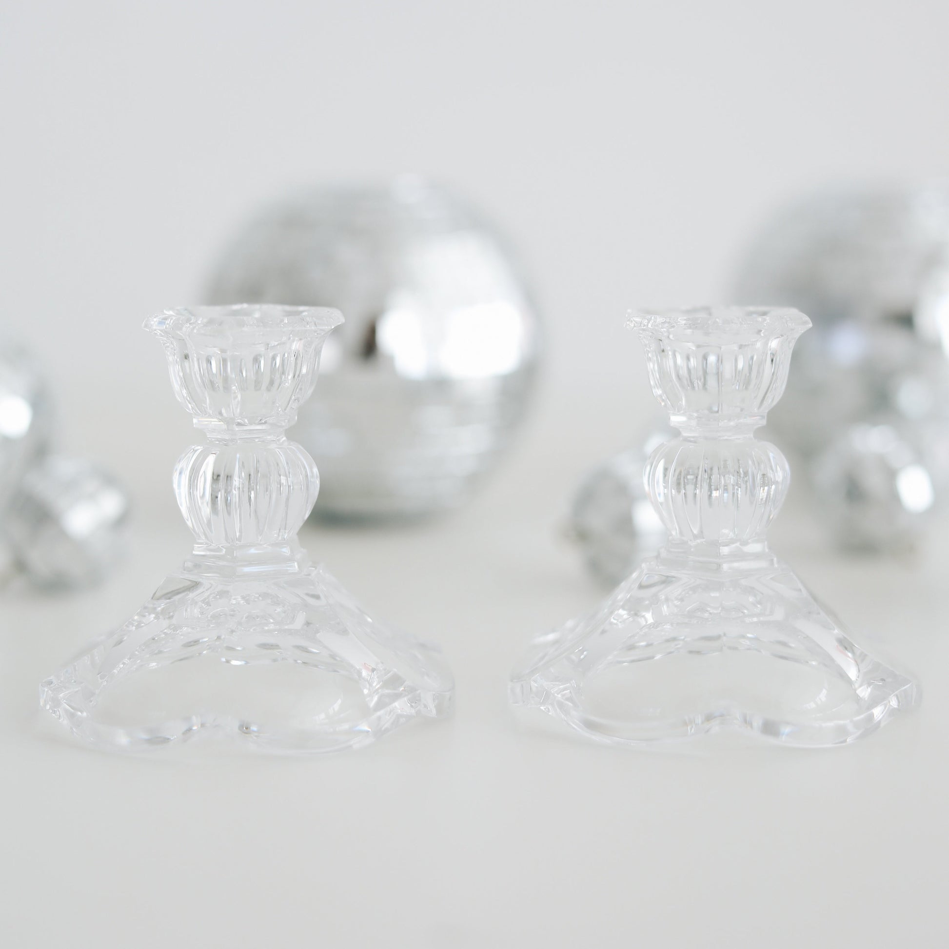 These beautifully elegant crystal candlestick holders are a perfect addition to any table setting. Available in multiple sizes to best fit your needs.