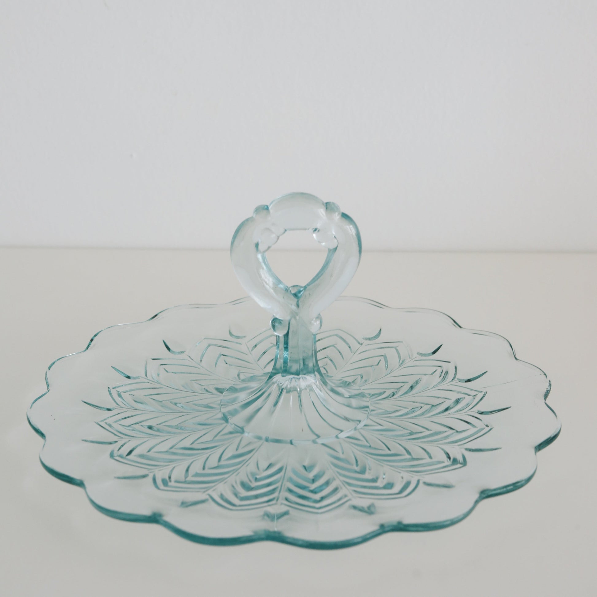 This glass dessert tray offers a delicate and fun way to display a special treat!